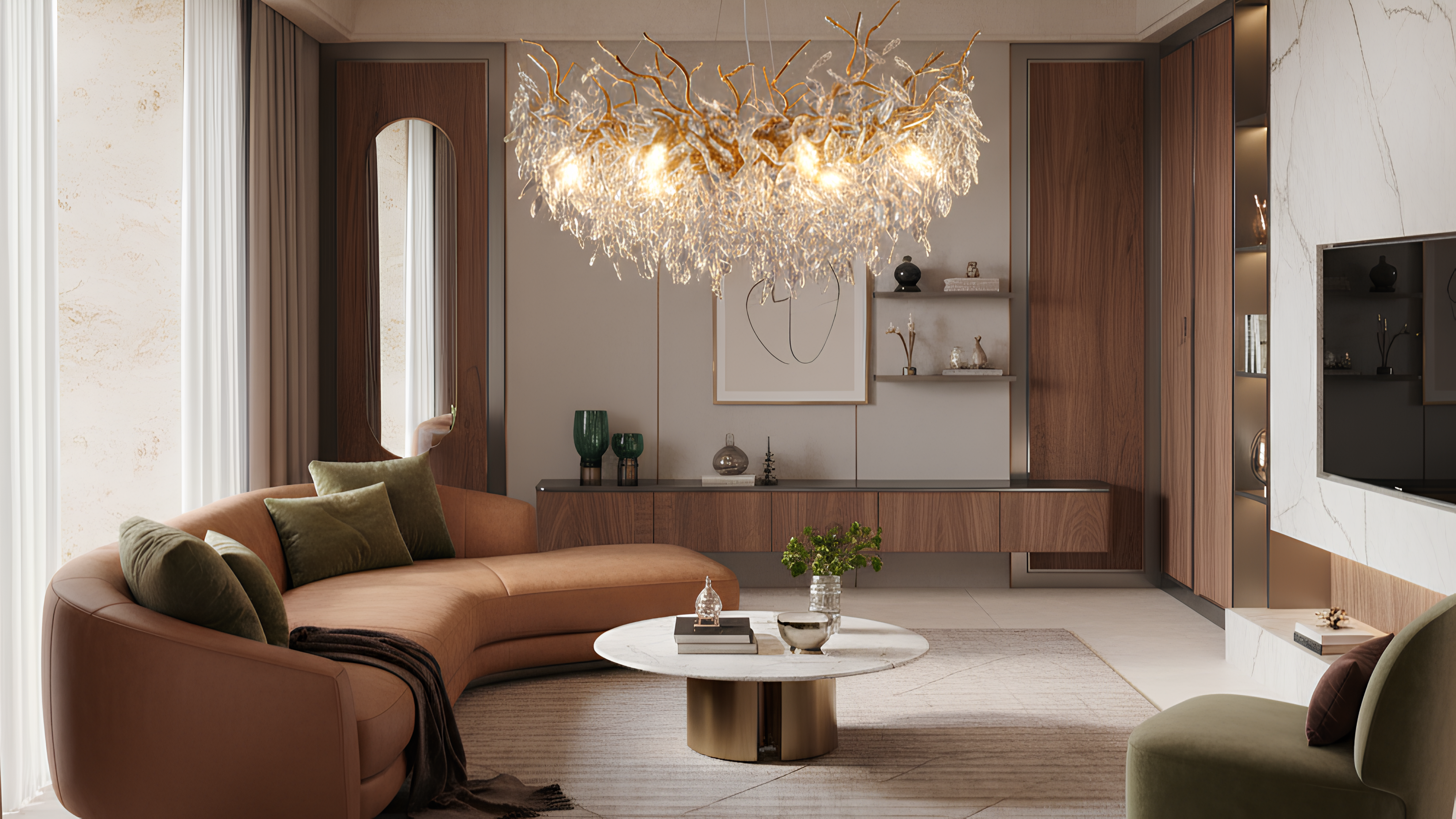 The Bright Crystal Chandelier Complements the Beautiful Home Perfectly.