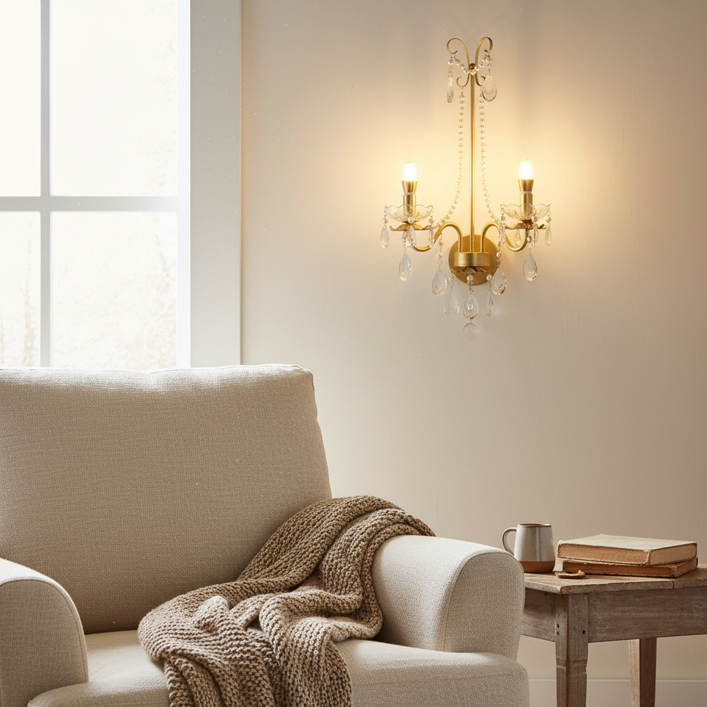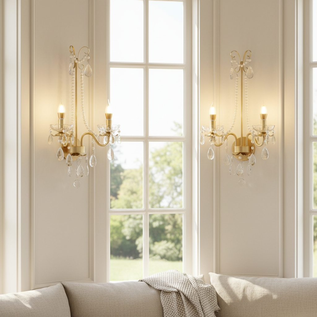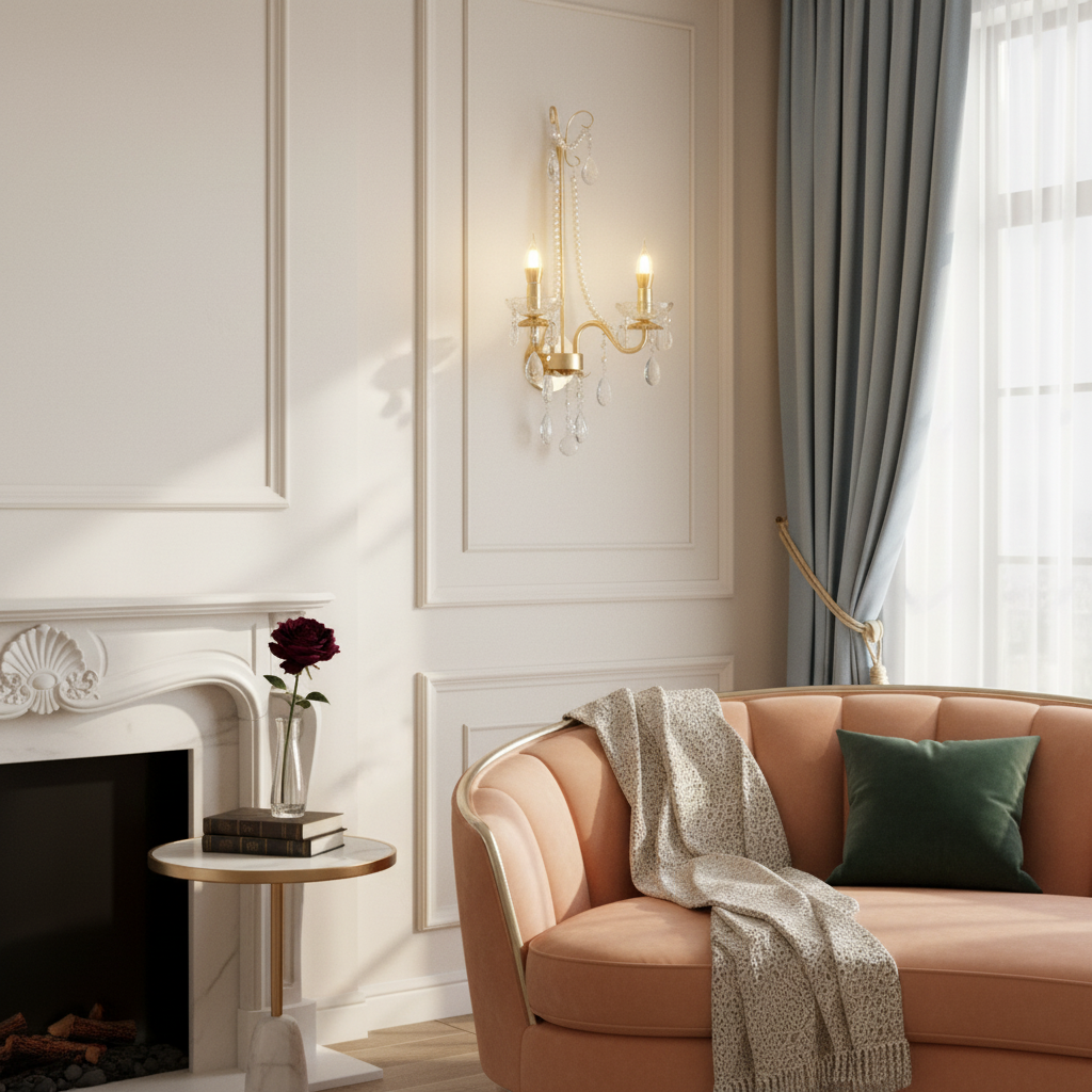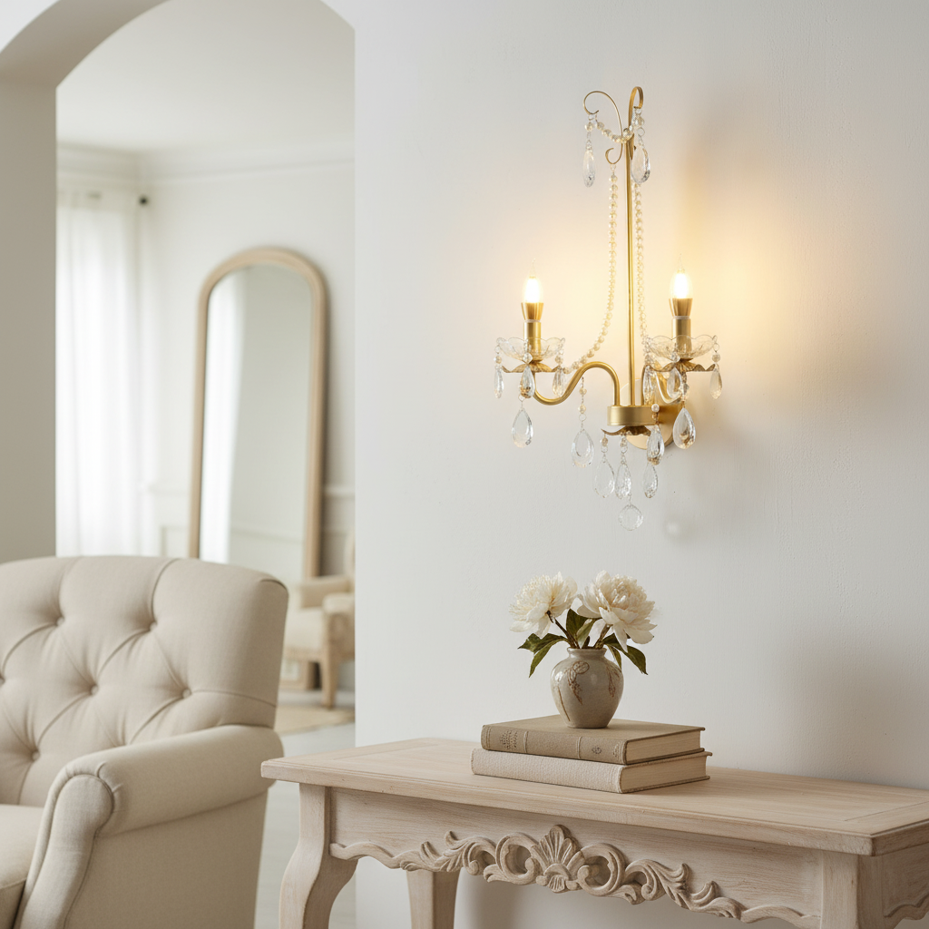 Add a touch of ornate glamour to your home with this elegant metal crystal pearl wall lamp — its graceful curves and sparkling details create a warm, luxurious glow that enhances living rooms, bedrooms, hallways, or entryways with refined style and timeless charm.