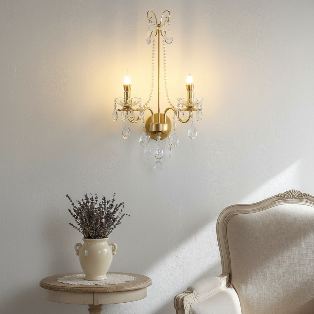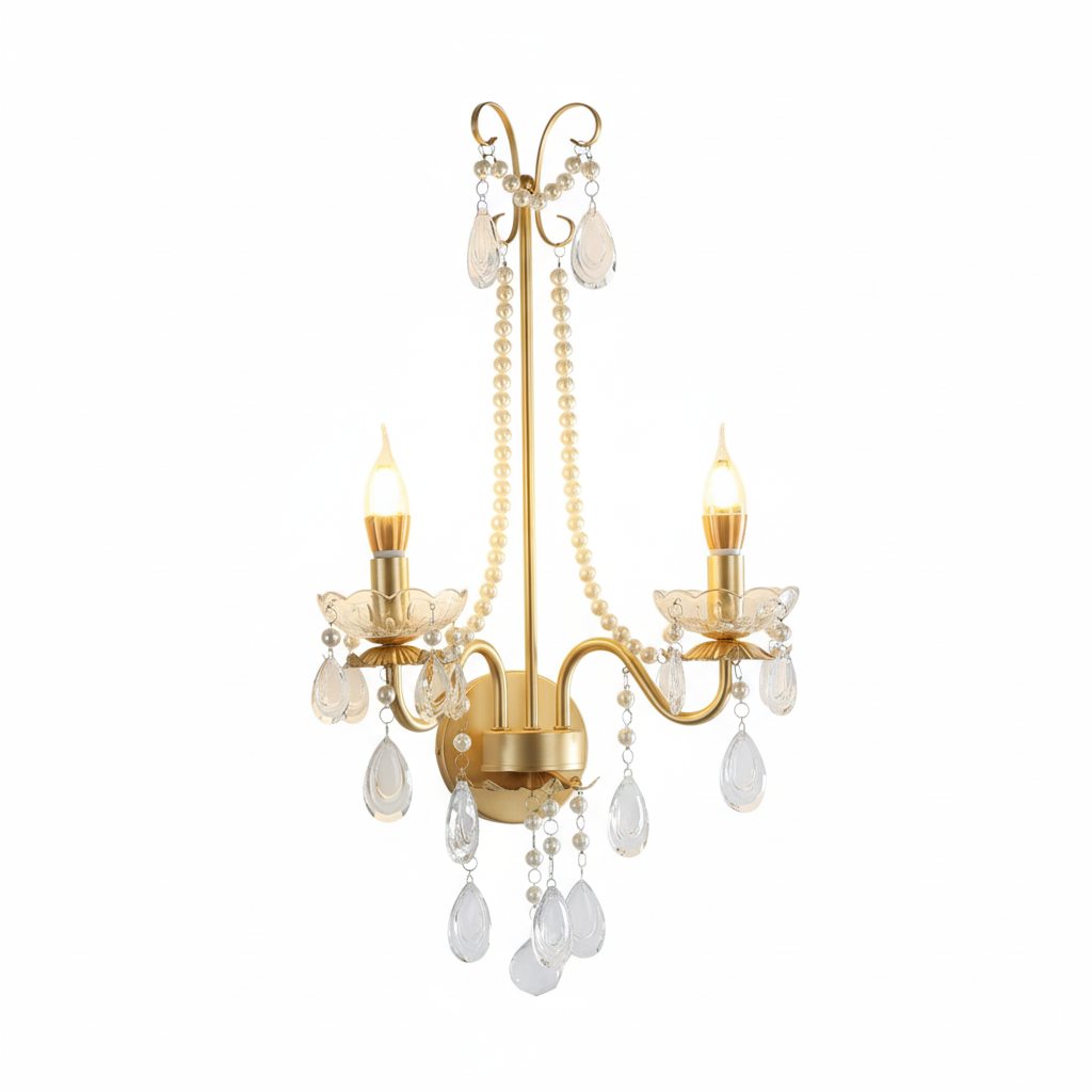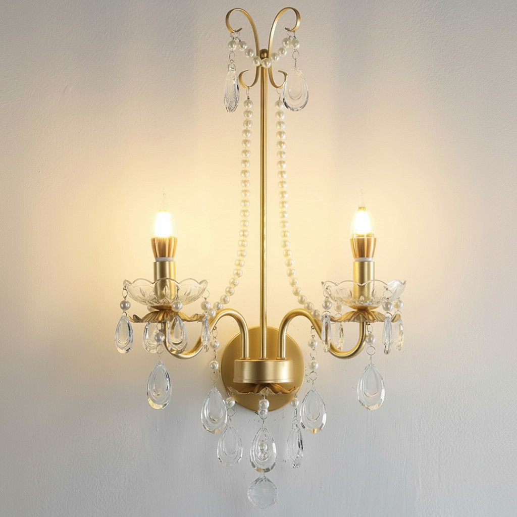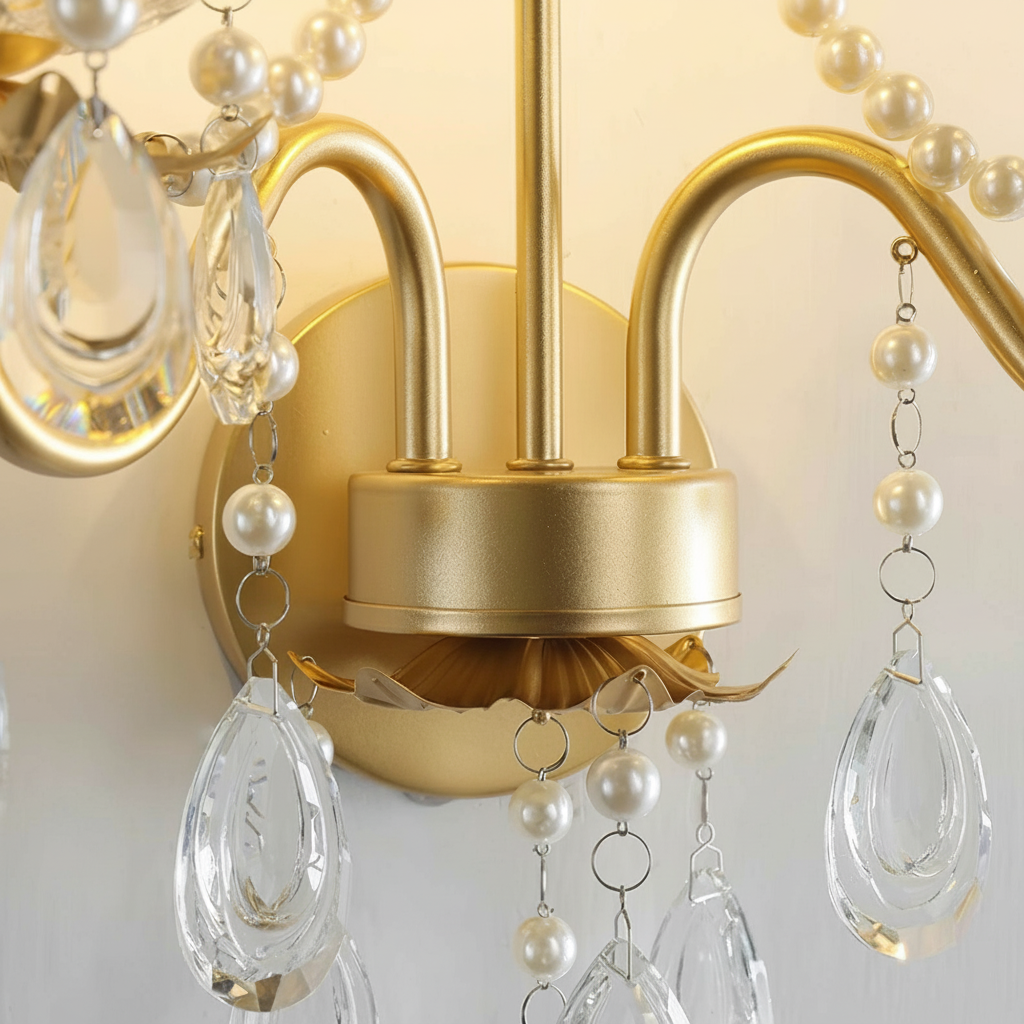 Elegant French Luxury Retro Palace Crystal Pearls Ornate Wall Lamp