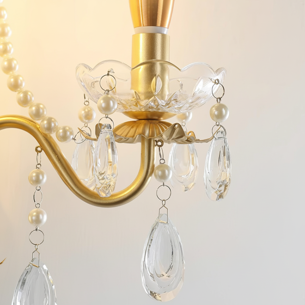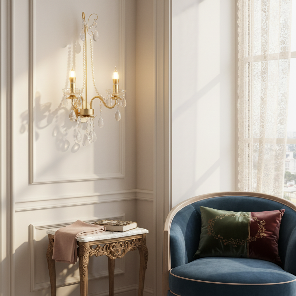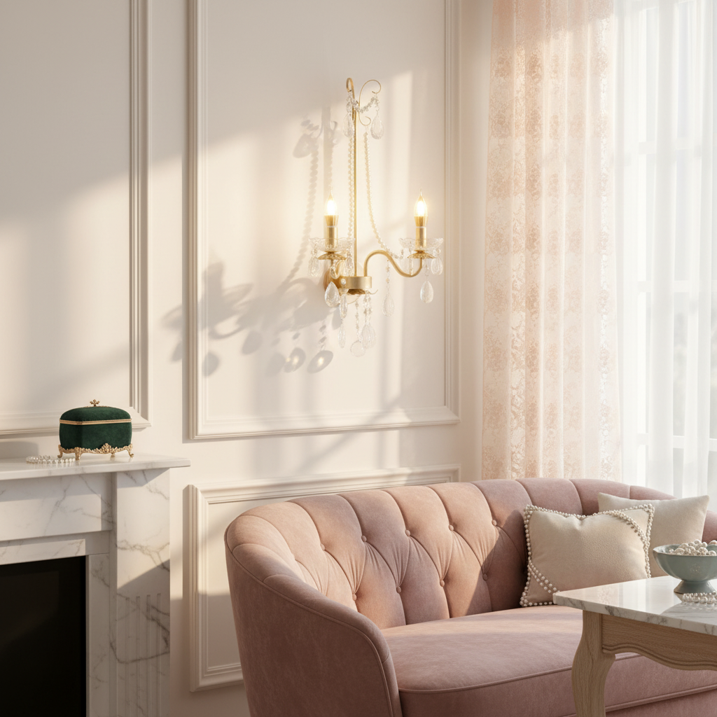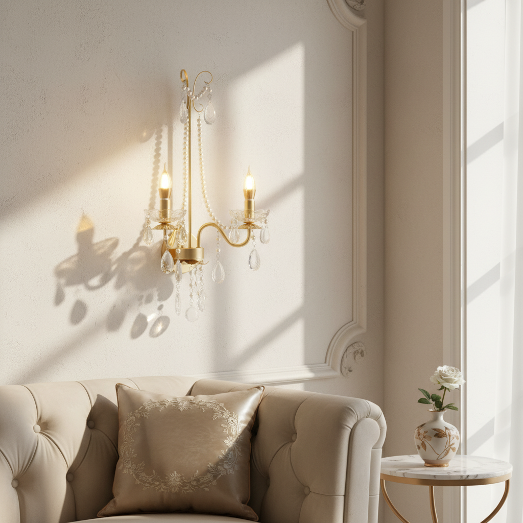 Elegant French Luxury Retro Palace Crystal Pearls Ornate Wall Lamp