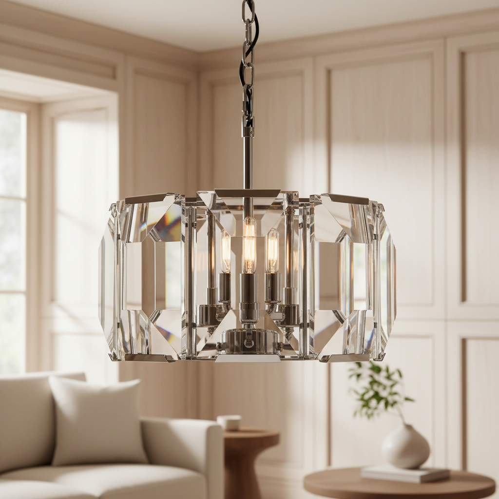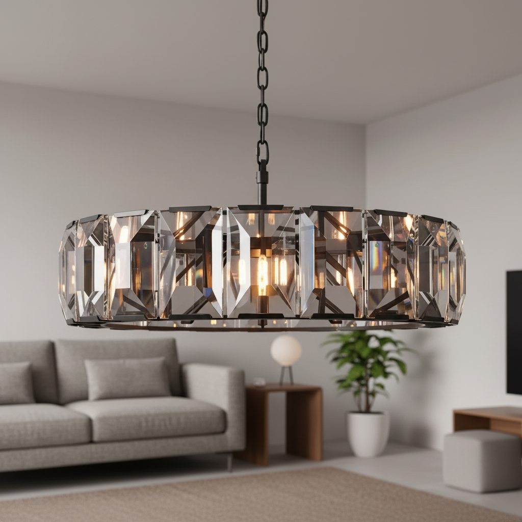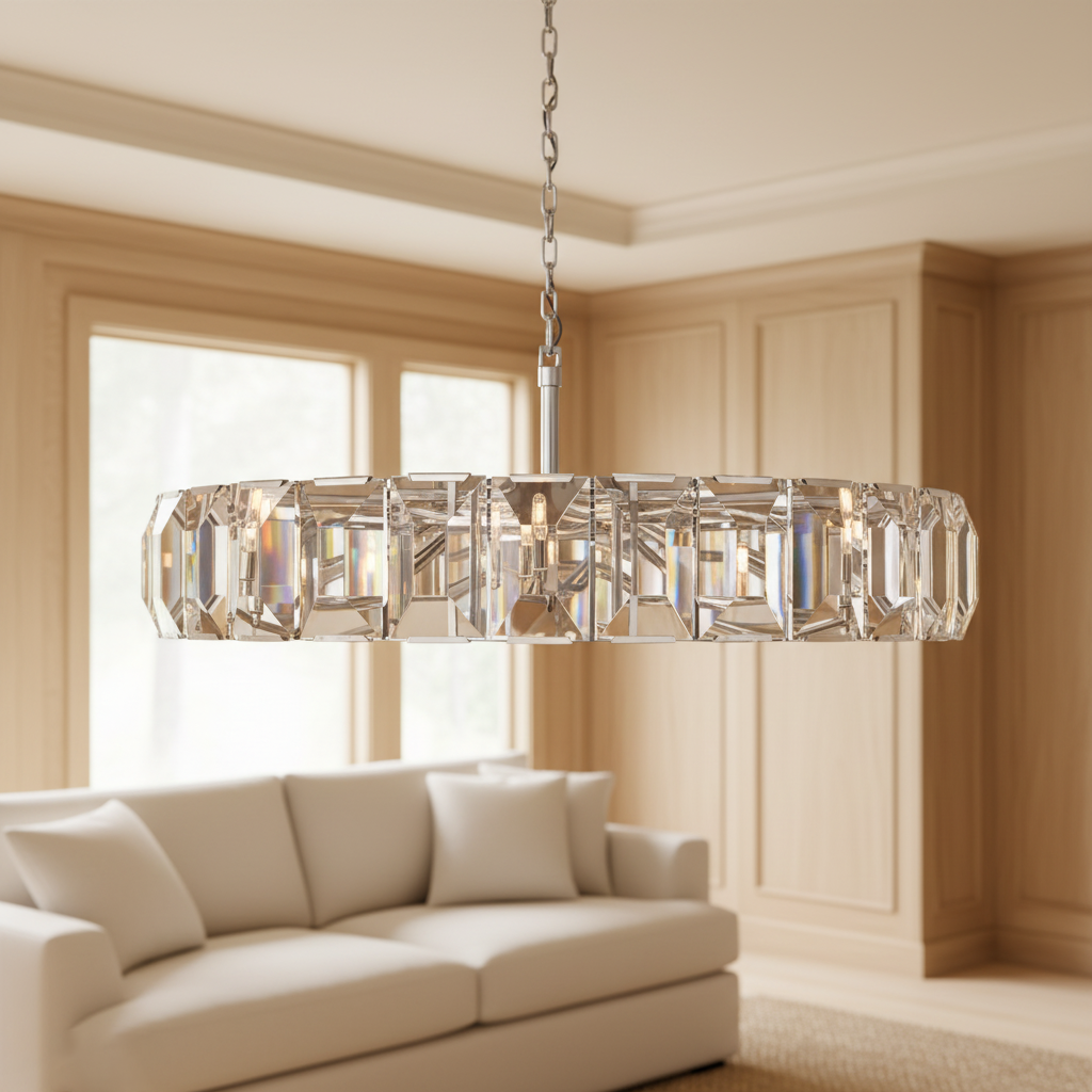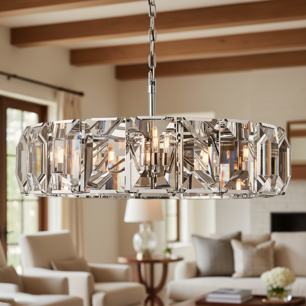 Chloe Modern Hand-Cut Prism Multicurve Crystal Round Chandelier