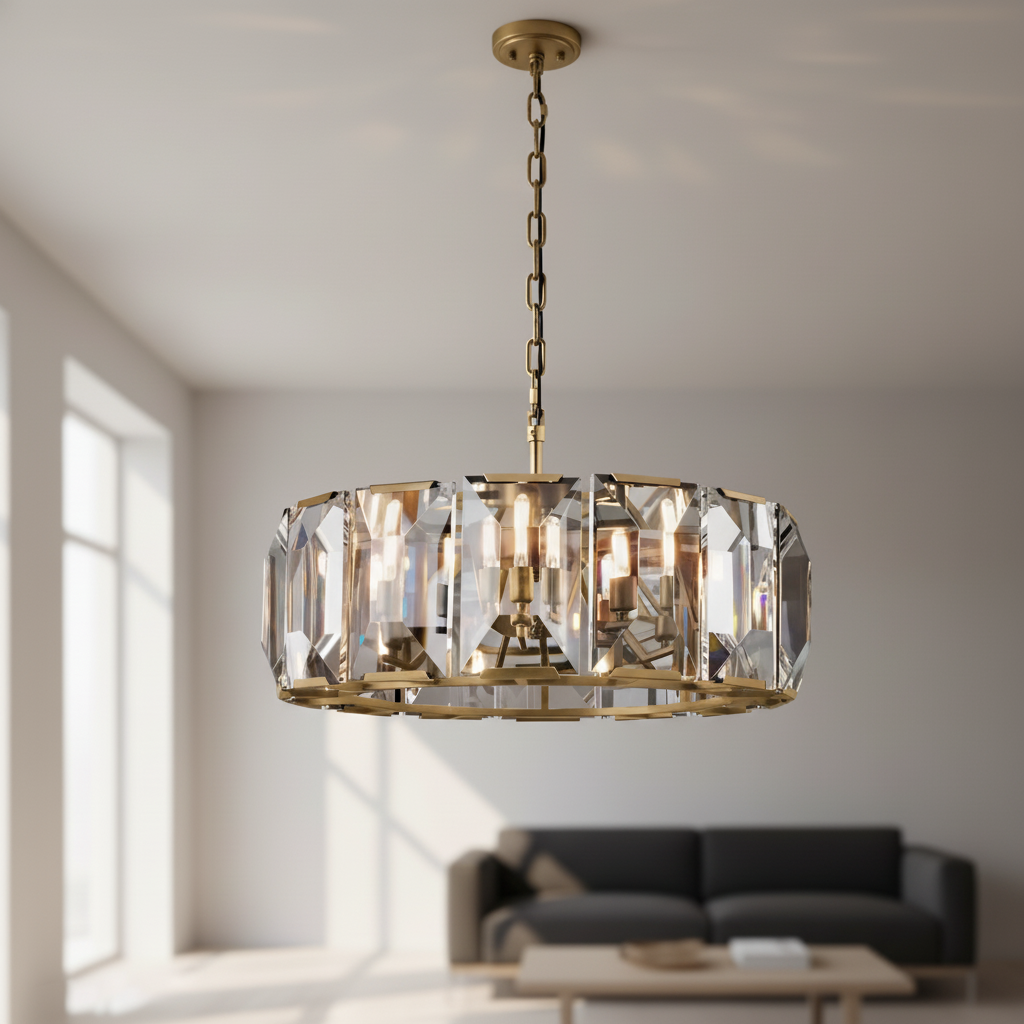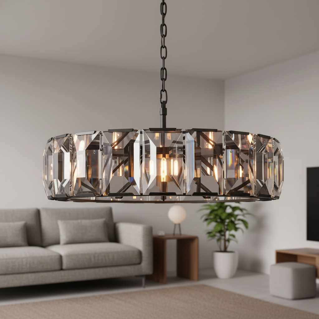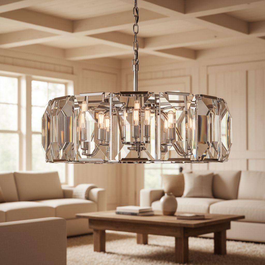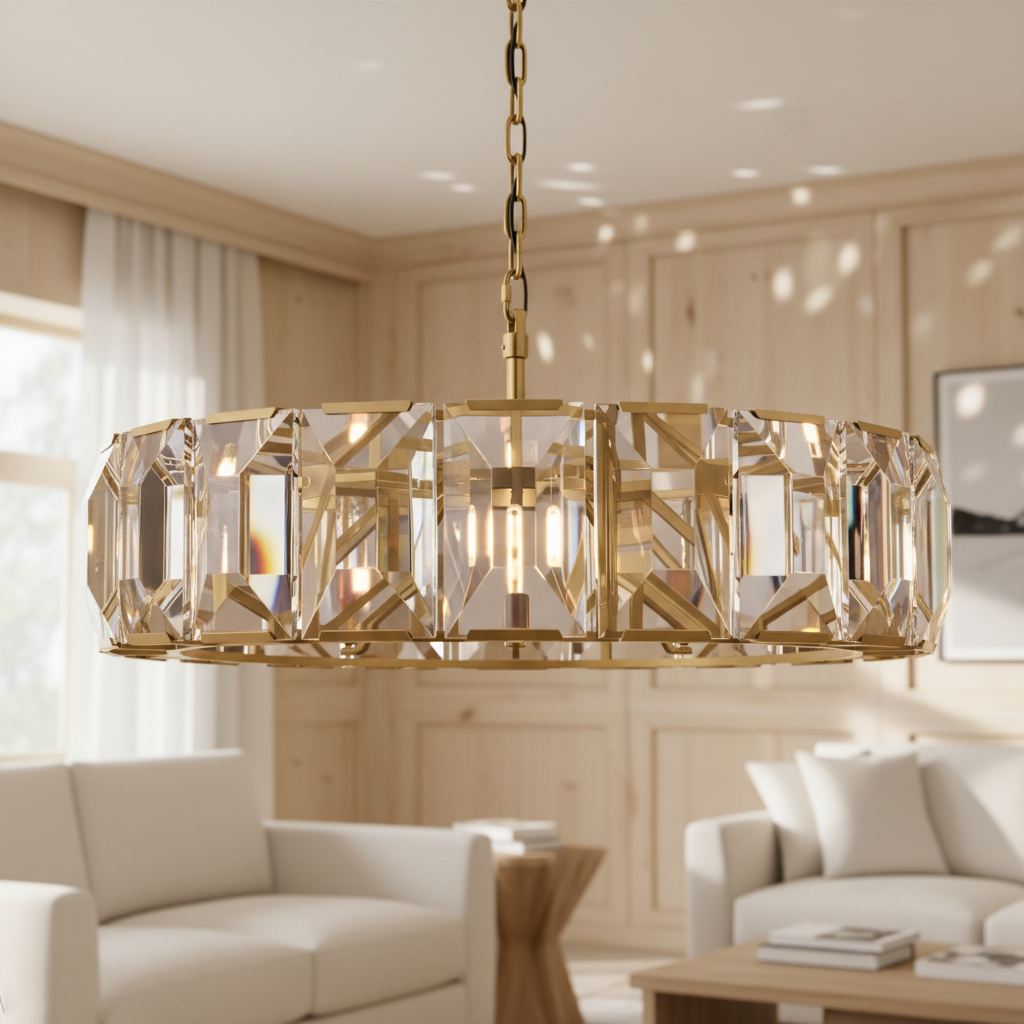 Chloe Modern Hand-Cut Prism Multicurve Crystal Round Chandelier