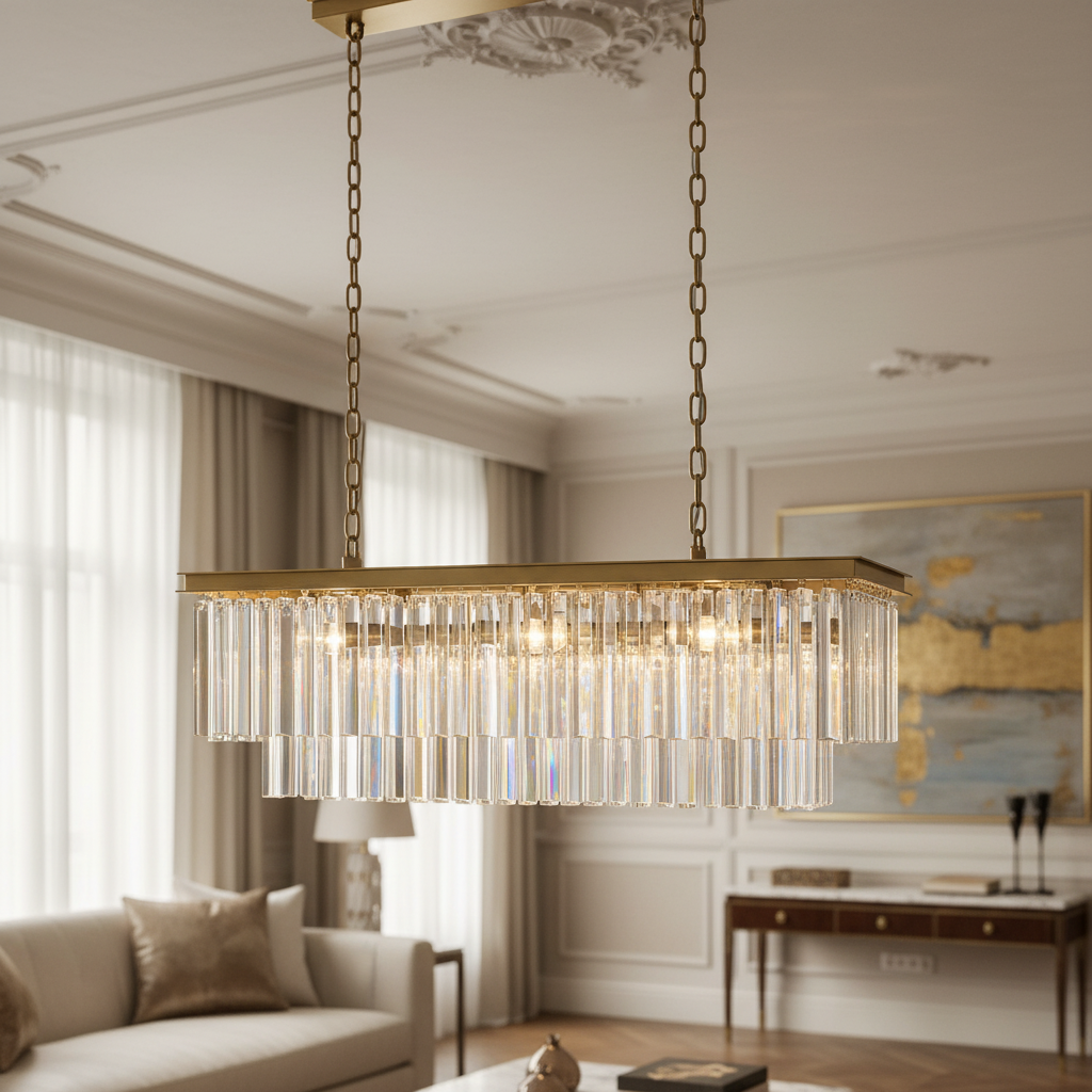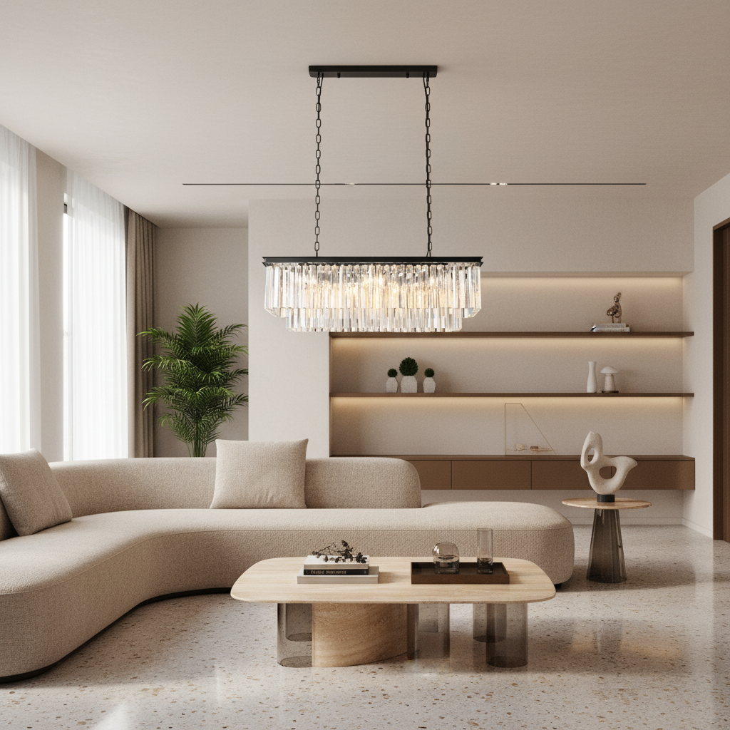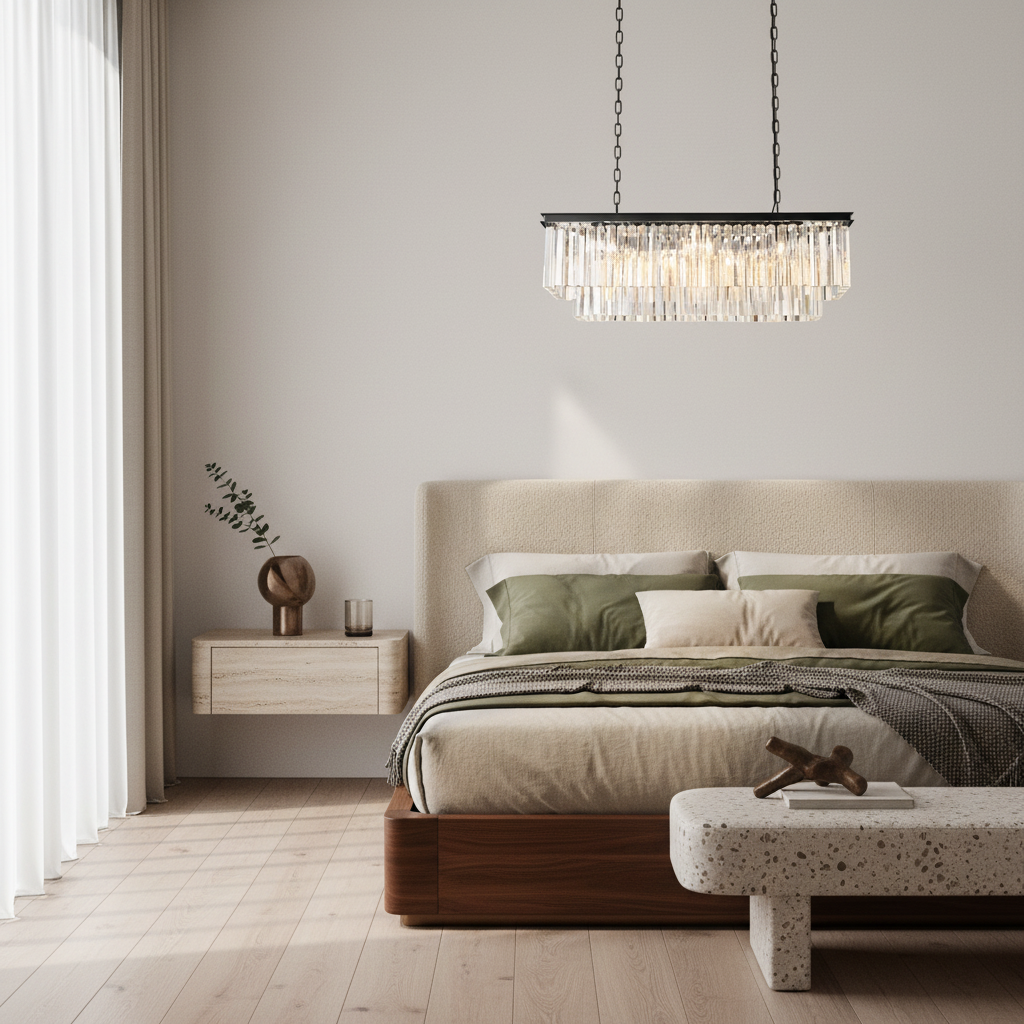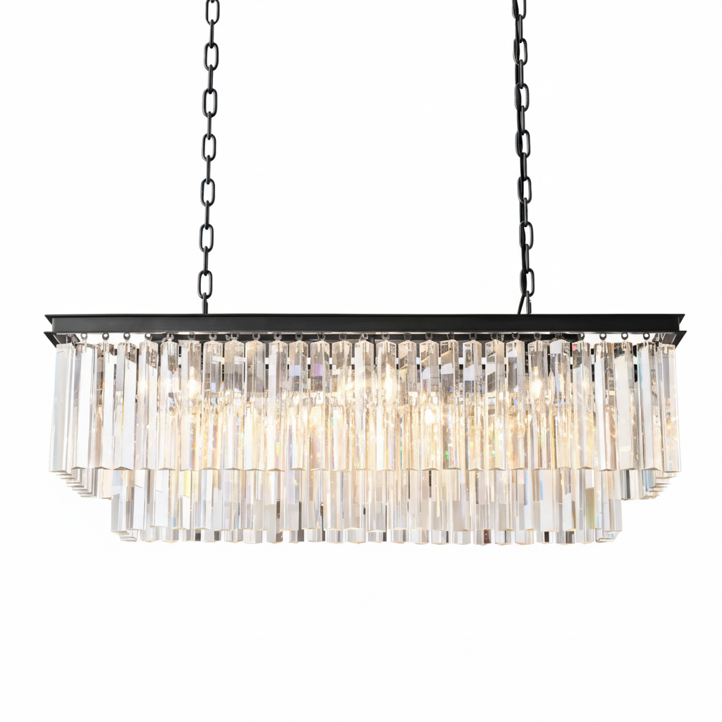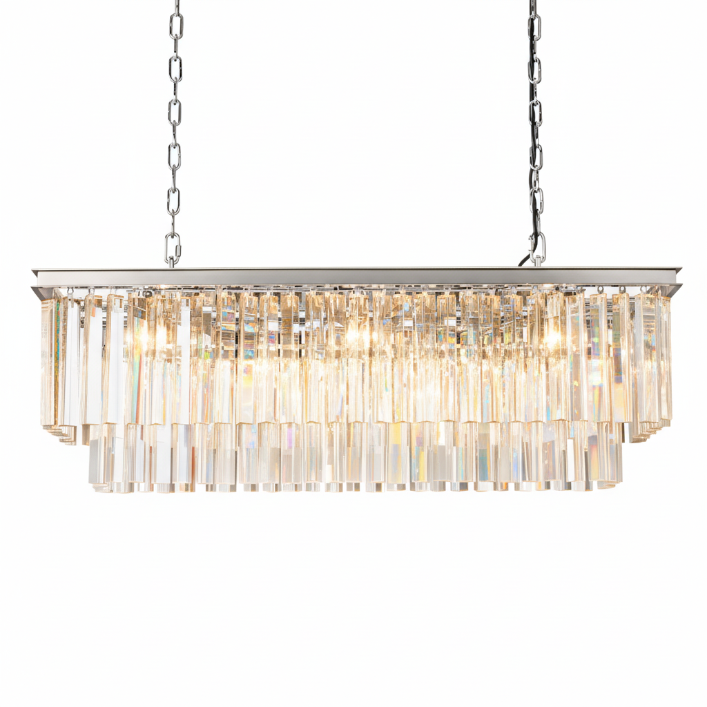 Iris Modern 2-Tiered Rectangular Glass Chandelier