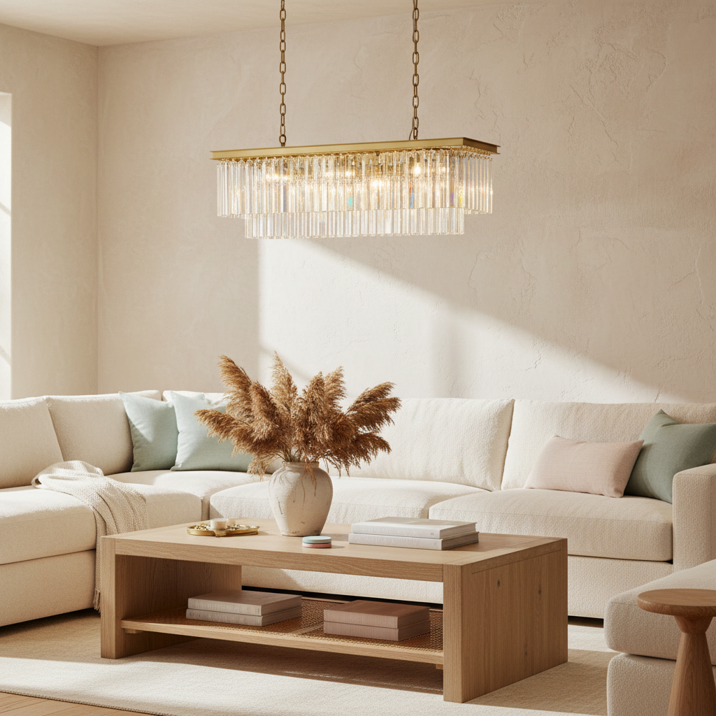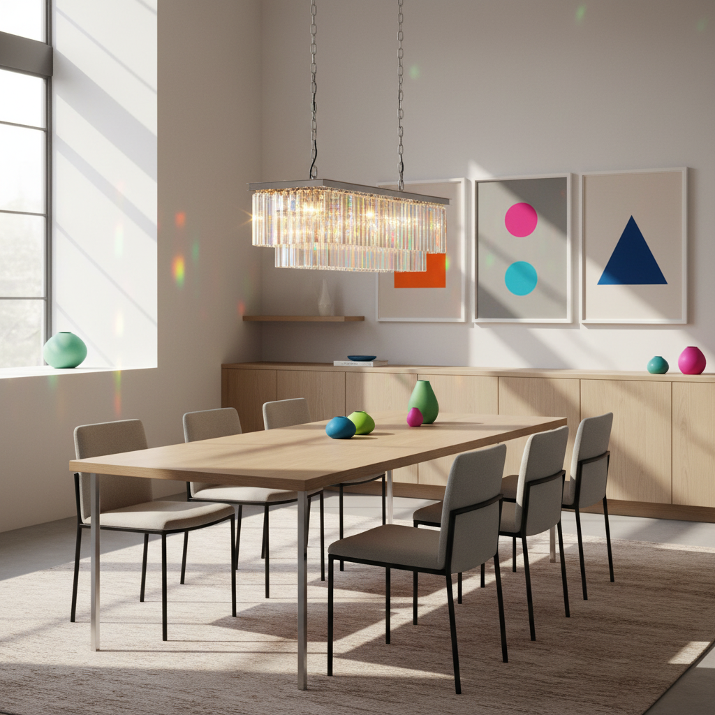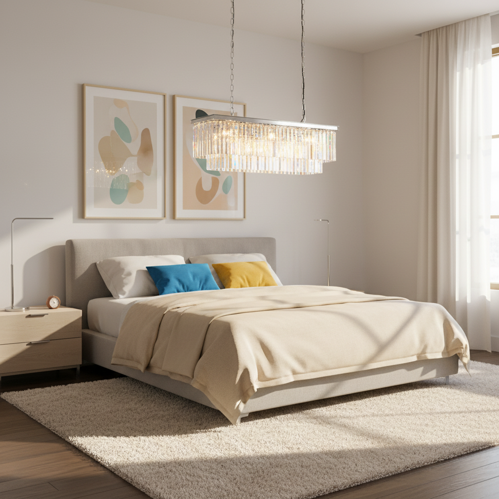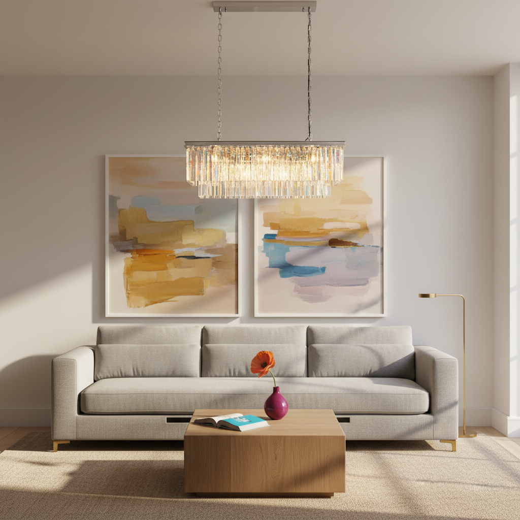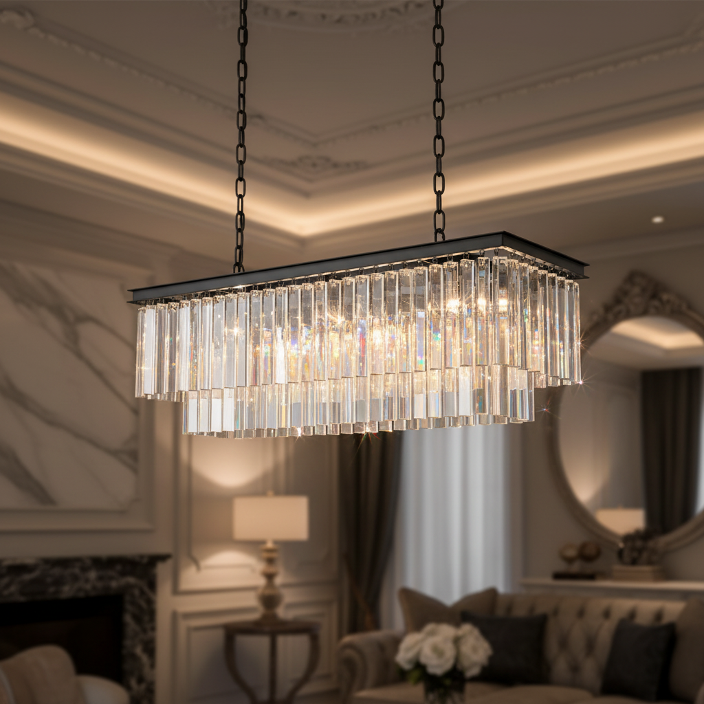 Iris Modern 2-Tiered Rectangular Glass Chandelier