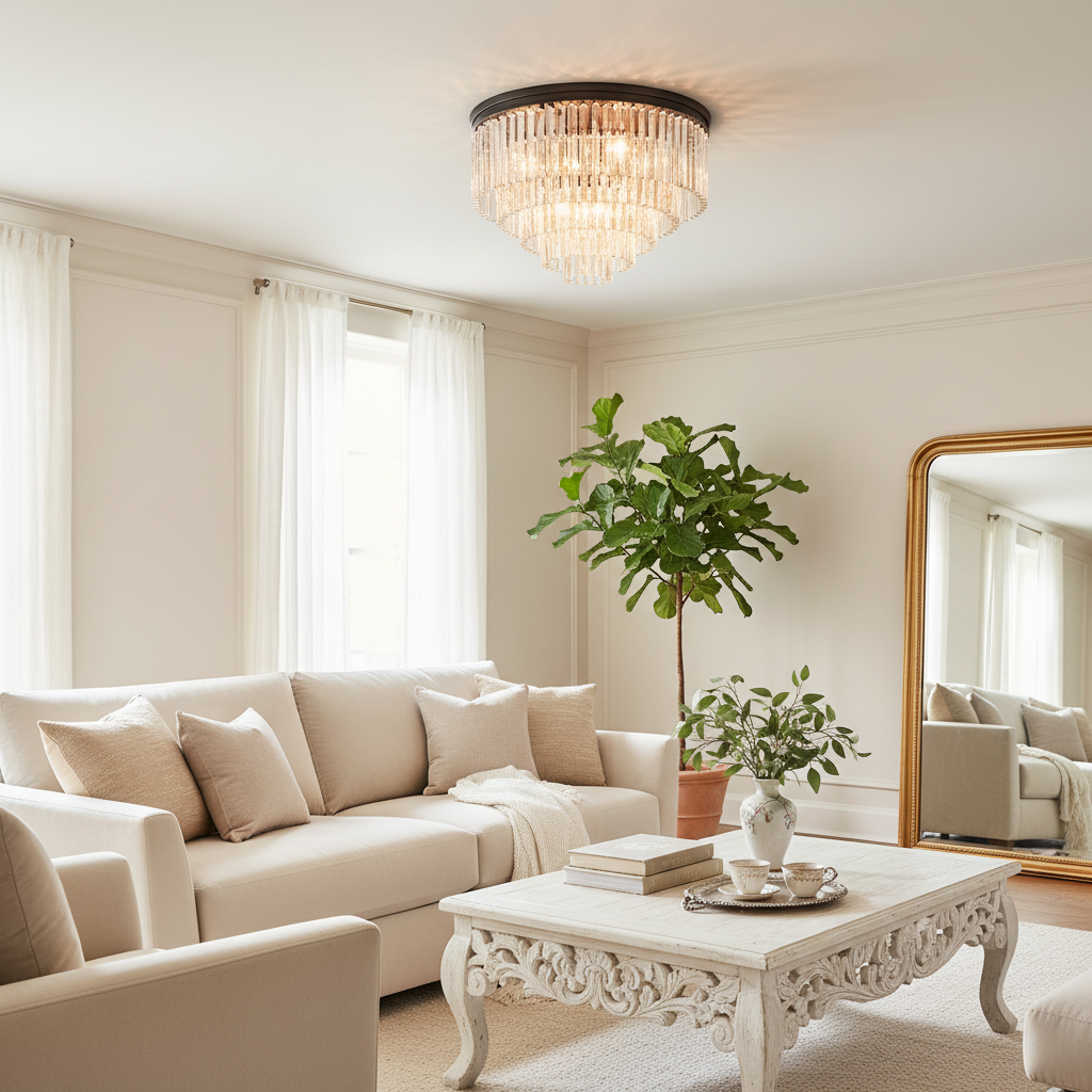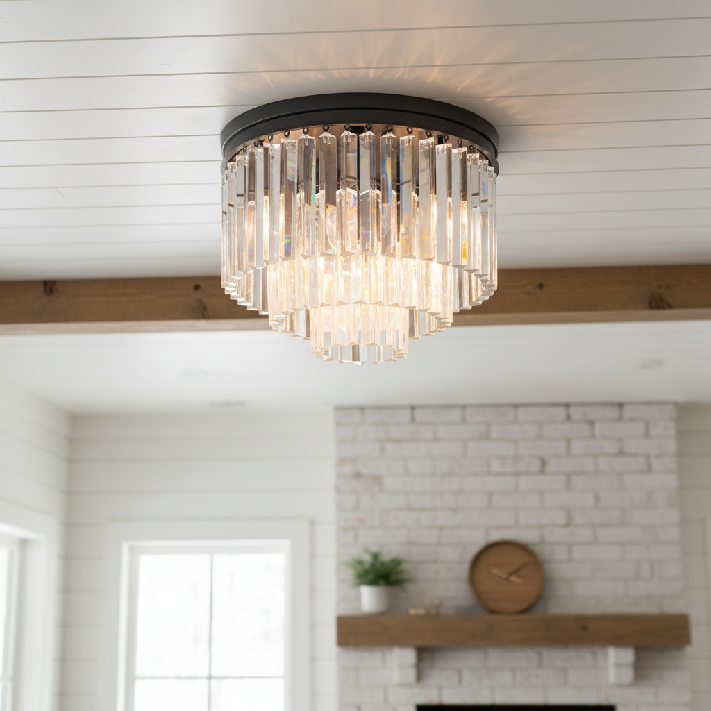 Iris Modern Multi-Tier Round Glass Flush Mount Ceiling Light
