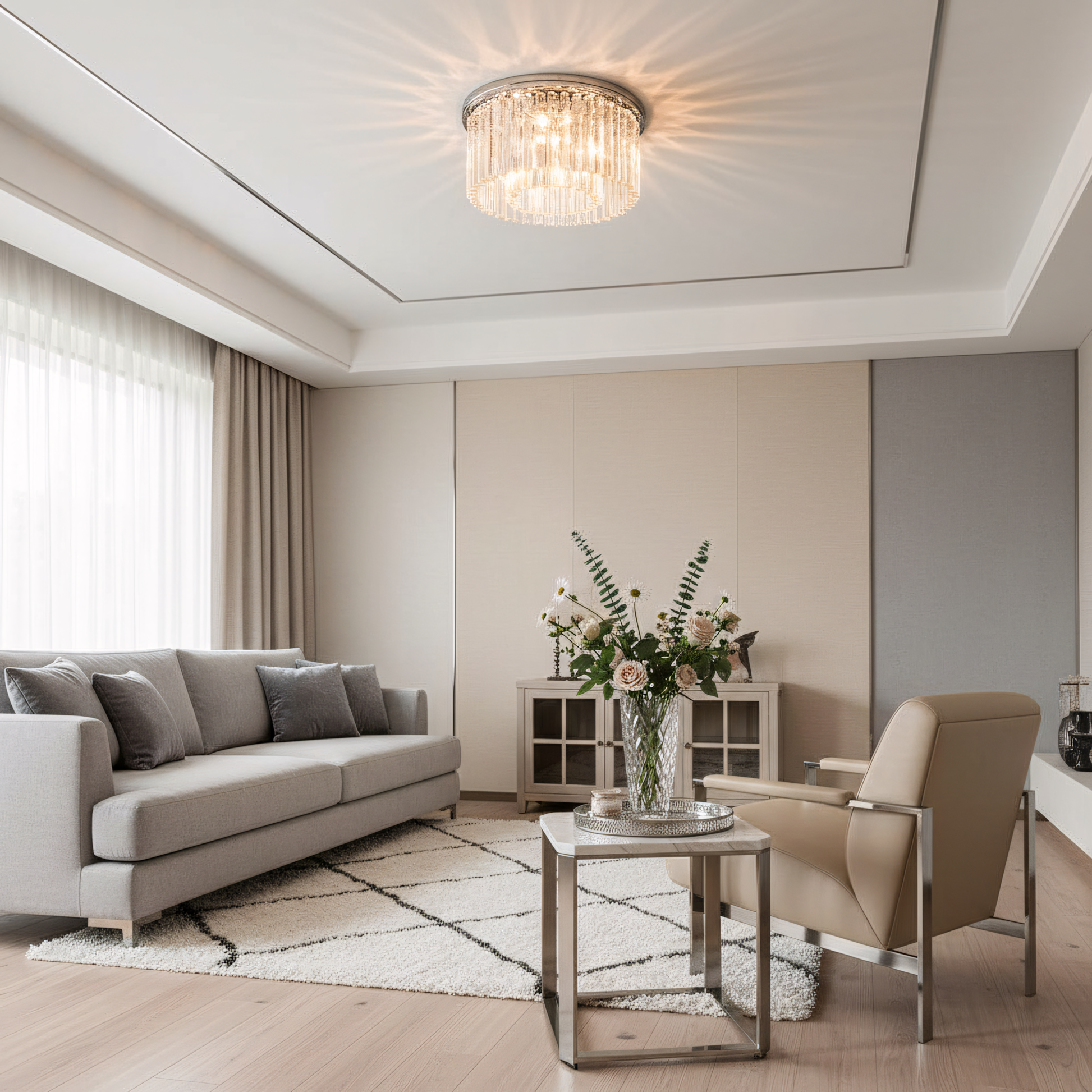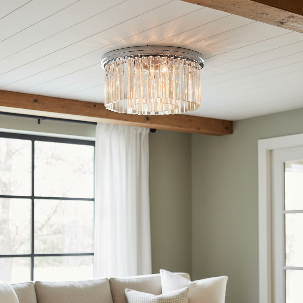 Lila Modern Crystal Prism Round Flushmount Ceiling Light