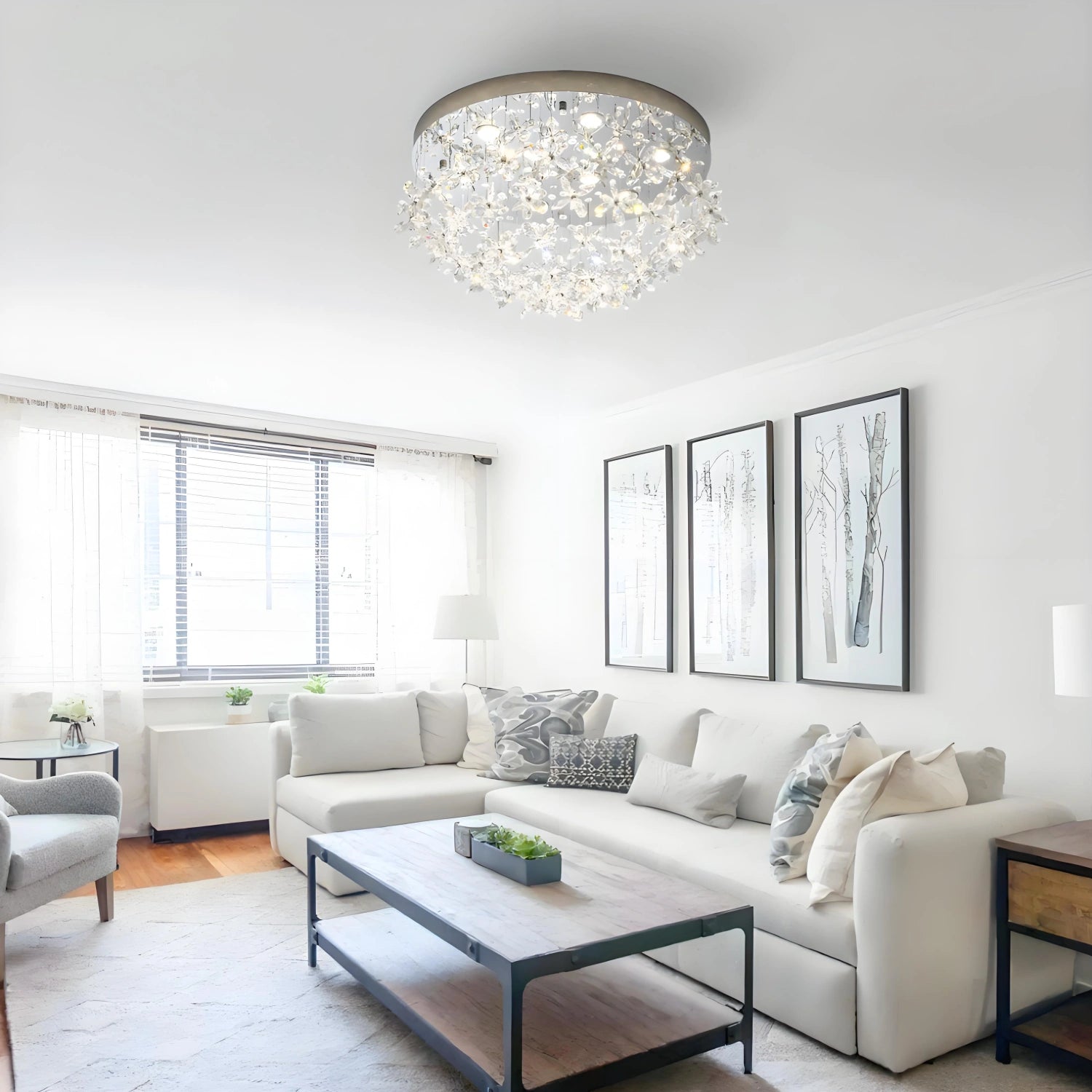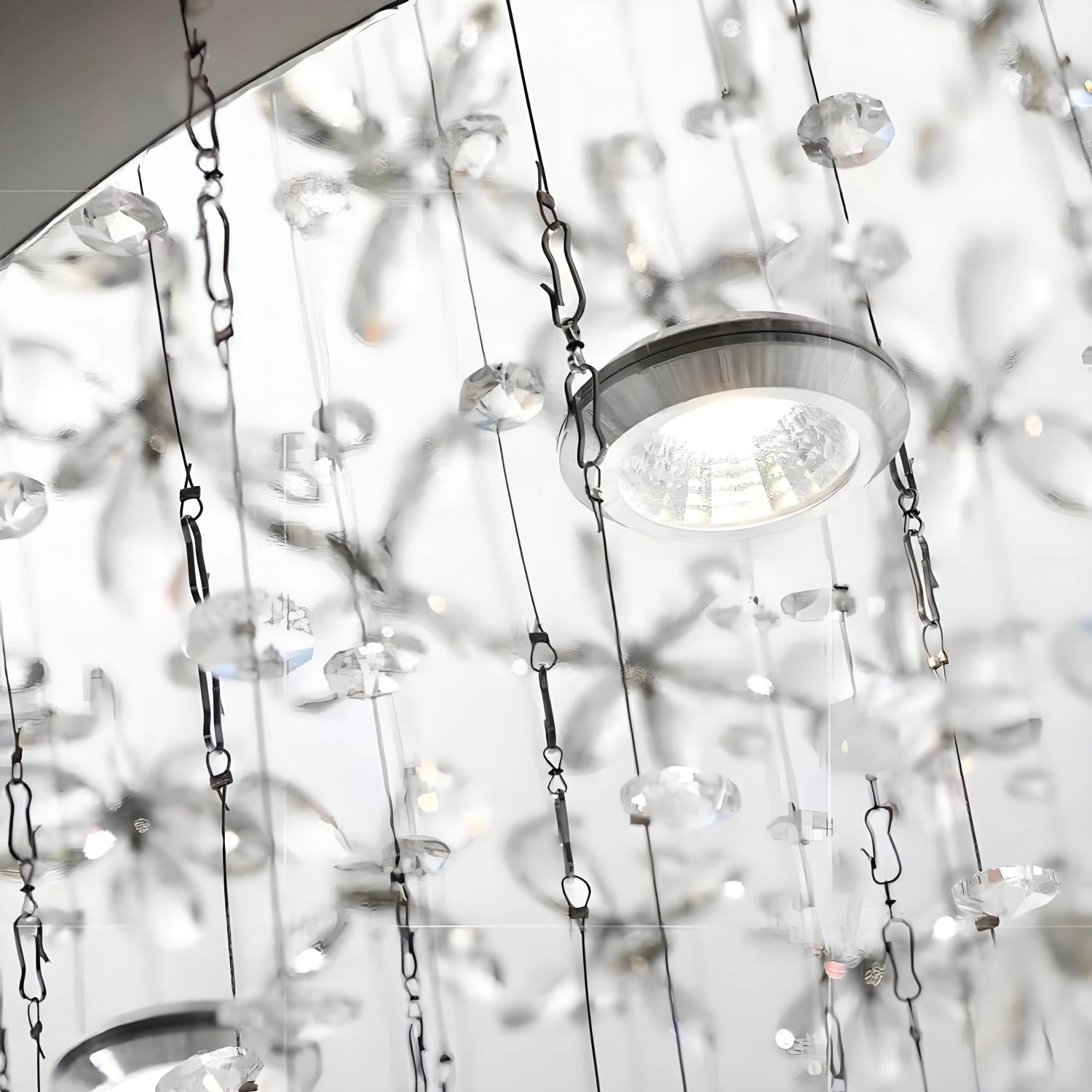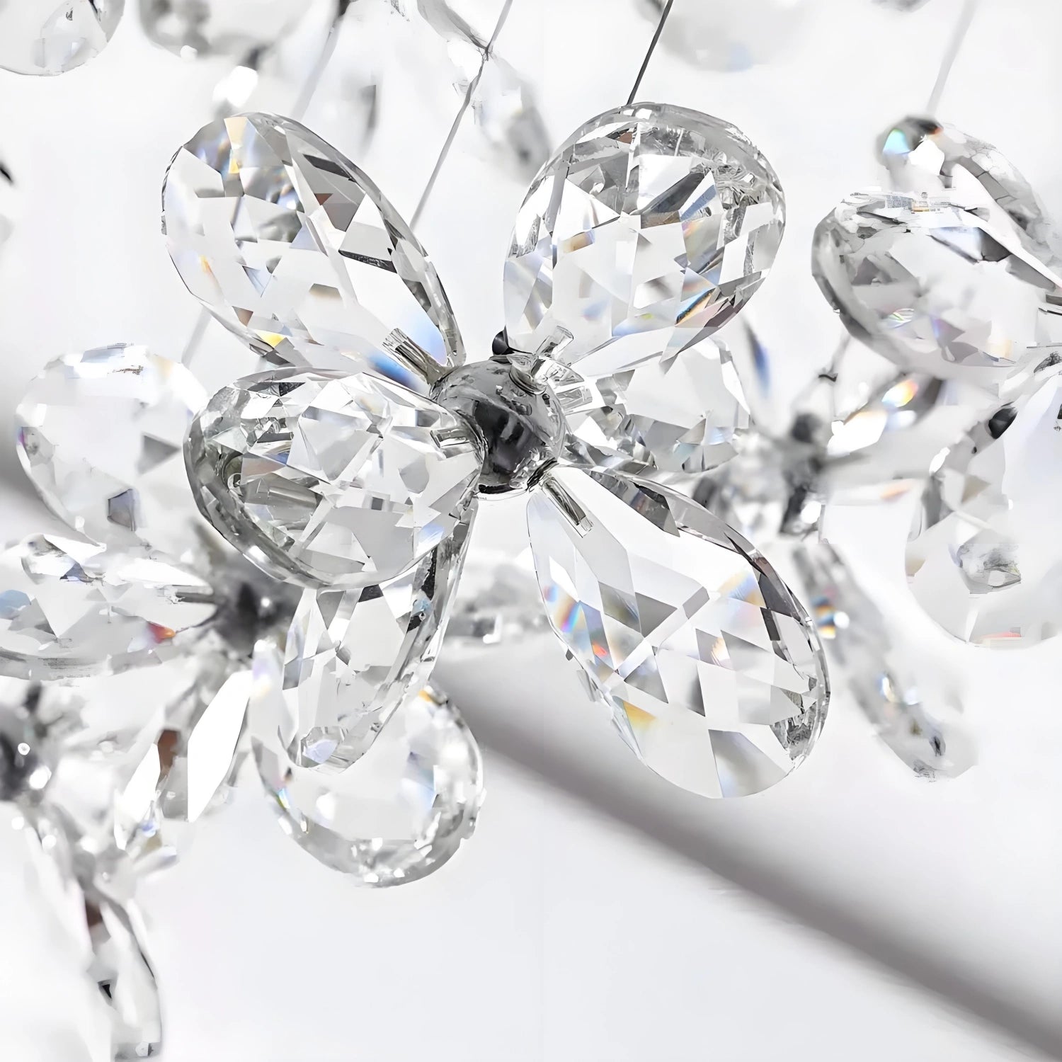 This crystal ceiling light, petal-crystals, sparkling chic. Perfect for living / dining, modern minimalist, elevates your space.