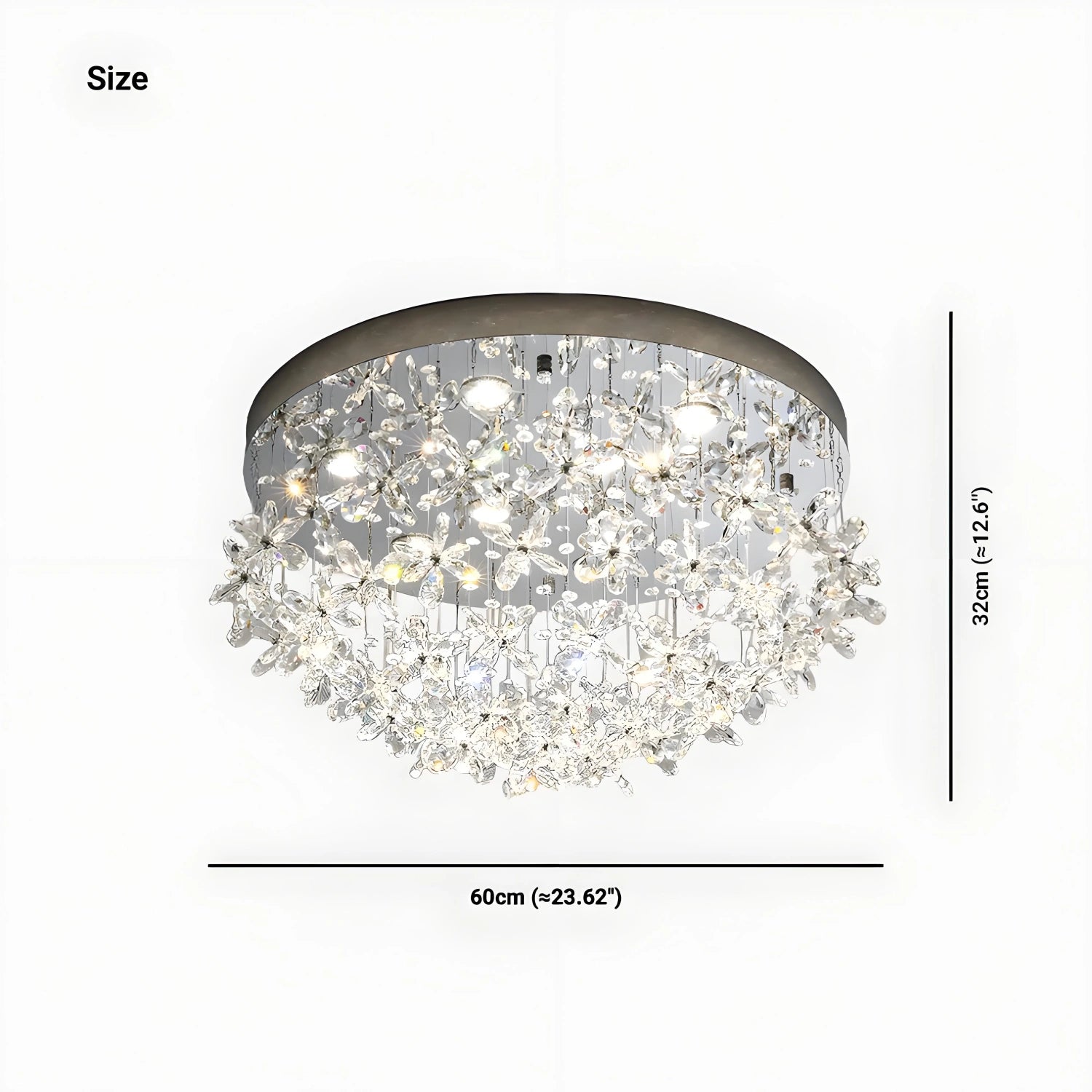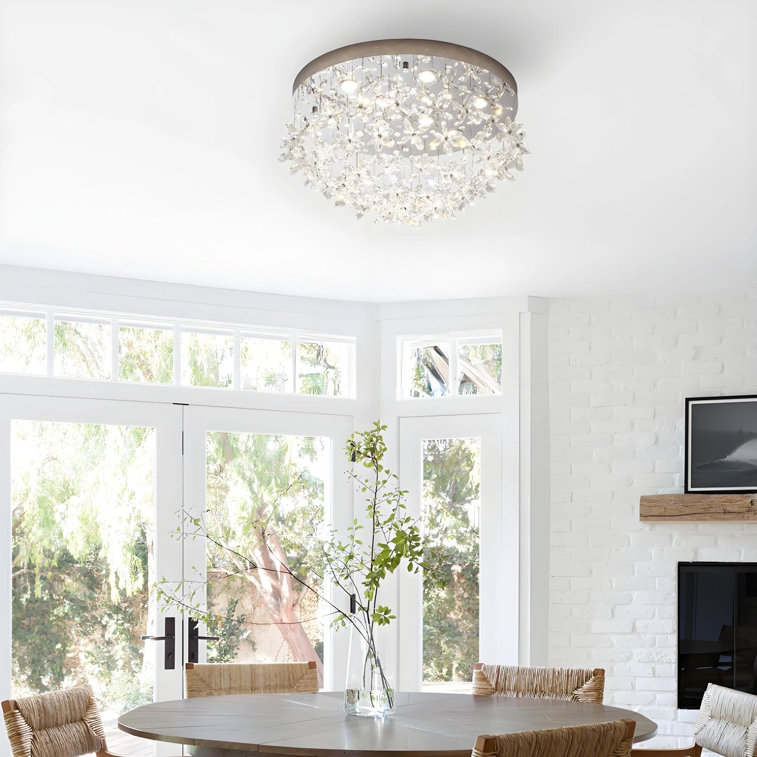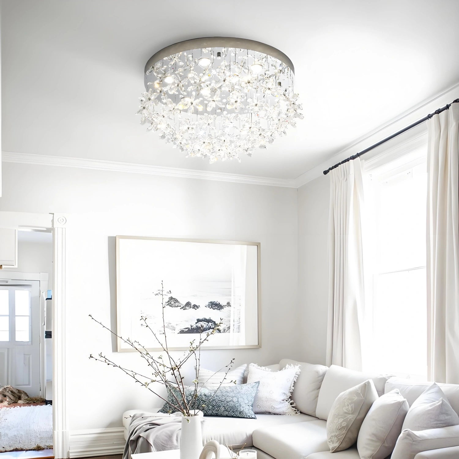 This crystal ceiling light, petal-crystals, sparkling chic. Perfect for living / dining, modern minimalist, elevates your space.