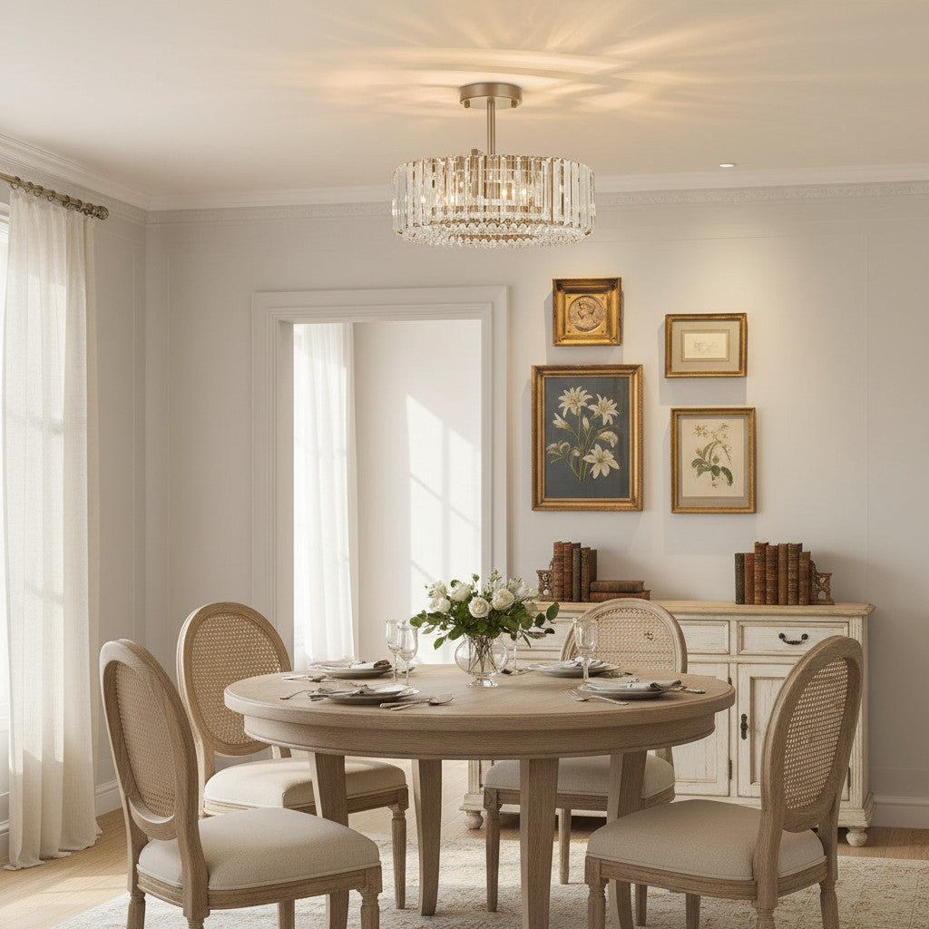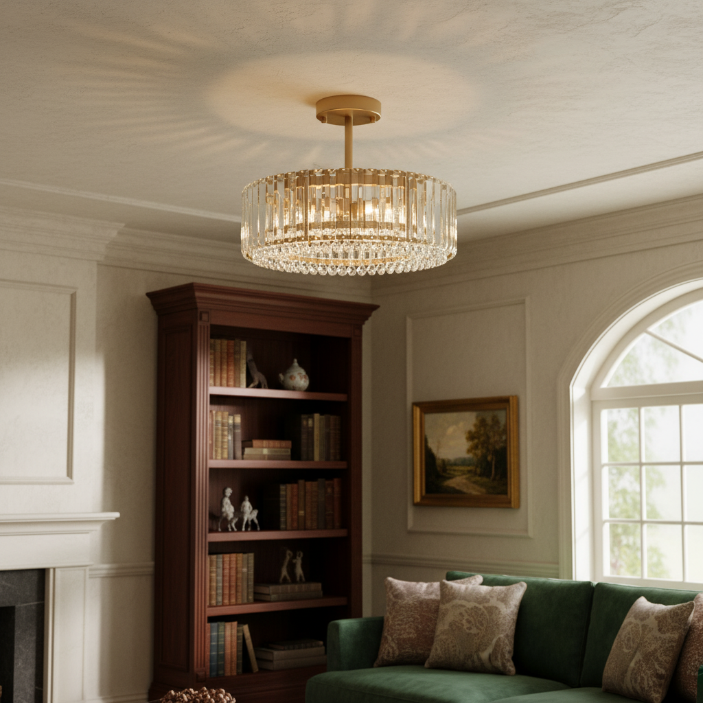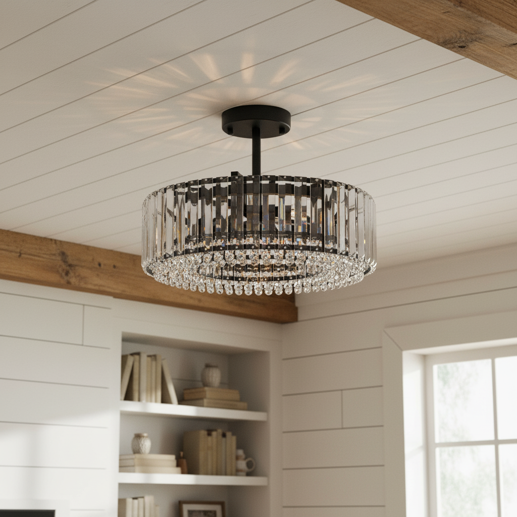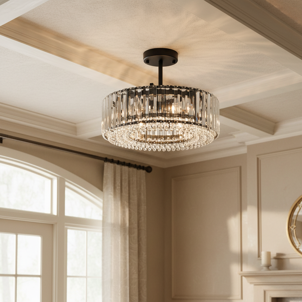 Minimalist round Crystal Semi Flush Mount Light