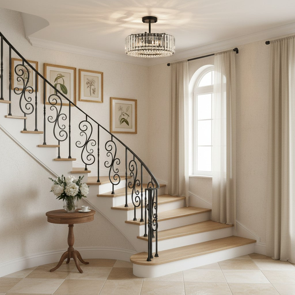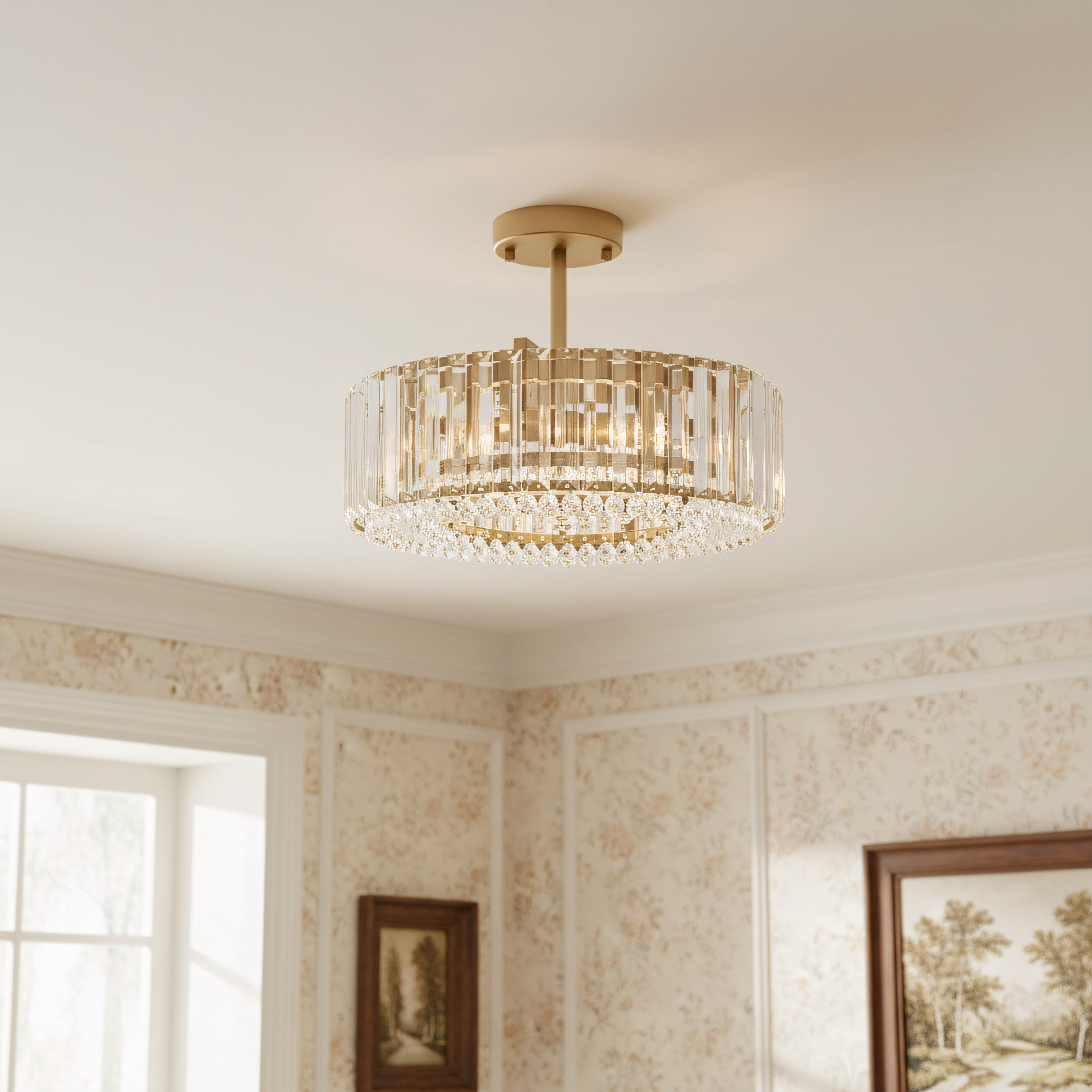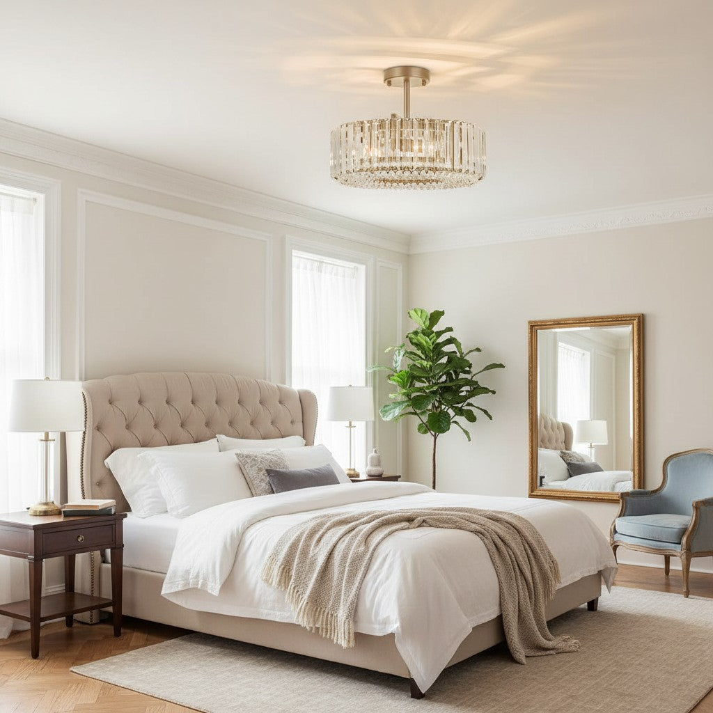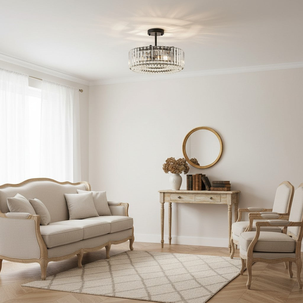 Minimalist round Crystal Semi Flush Mount Light